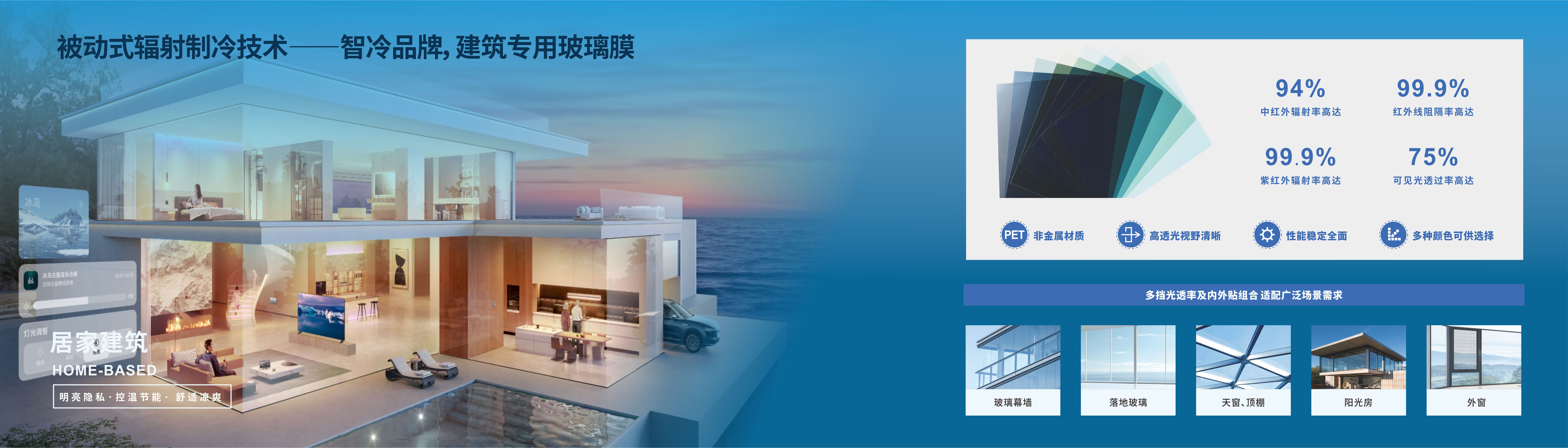 在当前全球高温的严峻挑战下,建筑行业作为能源消耗的重电领域,打造绿色建筑已经成为重要的发展方向。开发和应用有效绿色建筑材料,对于降低建筑能耗、减少温室气体排放具有关键作用。尤其是实施便捷、效果显著且能够应对当前高温的节能方案,将成为推动建筑行业可持续发展的重要动力。创冷科技无电制冷膜iFilm全面升级,将以卓越的节能降温效果和多功能兼容性,满足市场对高效节能降温方案的多样化需求,辐射制冷膜,兼顾高透光性和高隔热性,适用于玻璃内外侧,安装简便。能够显著降低室内制冷需求,实现节能减排,提高室内舒适度。技术优势。